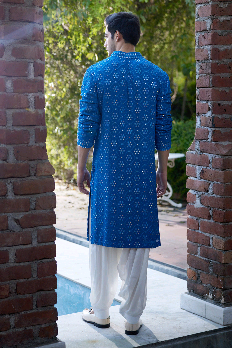 Blue Georgette Embroidery Mirror Ranbir Kurta Set With Stole